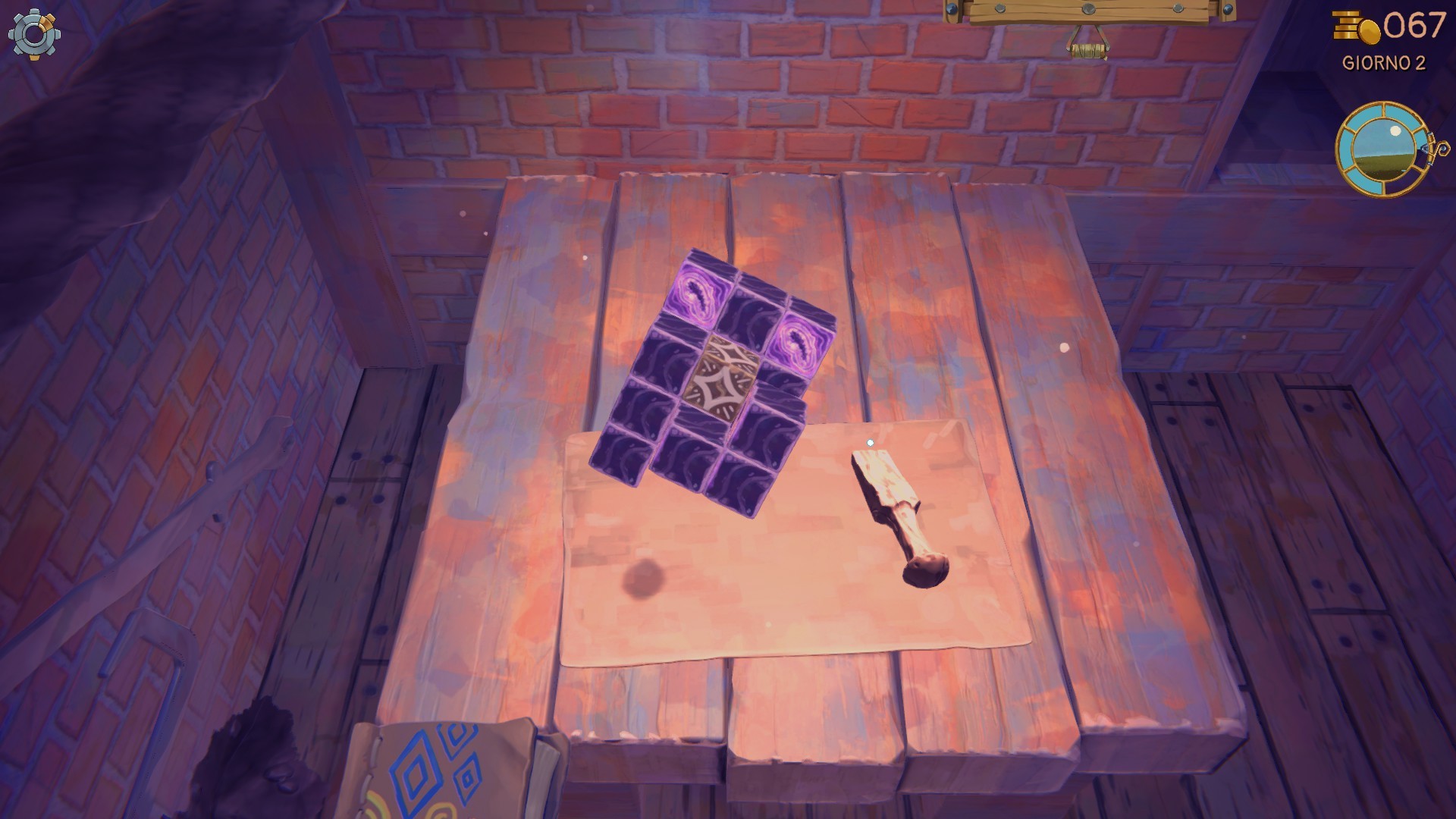 Tutto ruota, almeno inizialmente, sulla creazione degli oggetti. Una volta posizionato il sacco magico sul banco da lavoro dovremo colpire con lo scalpello l'oggetto informe per ricavarne qualcosa di concreto. Alcuni cubetti li possiamo rompere subito, altri non possiamo romperli e altri ancora si rompono solo se colpiti dal giusto lato. Dopo le prime partite, però, questa operazione diventerà velocissima soprattutto se riusciremo a comprare da Aimon scalpelli sempre più potenti. Poi l'oggetto va ripulito e qui entra in gioco la spugna (migliorabile anche questa) da strofinare sull'oggetto per renderlo perfetto, oppure potremo sfruttare la vasca da ammollo all'interno della quale lasciare l'oggetto per tutta la notte (al costo di 5 zecchini per il sapone) per trovarlo pronto l'indomani. Infine c'è la pinza che, come dicevamo, unisce e separa i vari oggetti: se troviamo delle zampe di una rana di peluche e poi tutto il resto ha senso assemblare il tutto per creare una bambola completa, lo stesso vale per un pugnale da goblin con il suo manico, per una bottiglia con il suo tappo e così via.