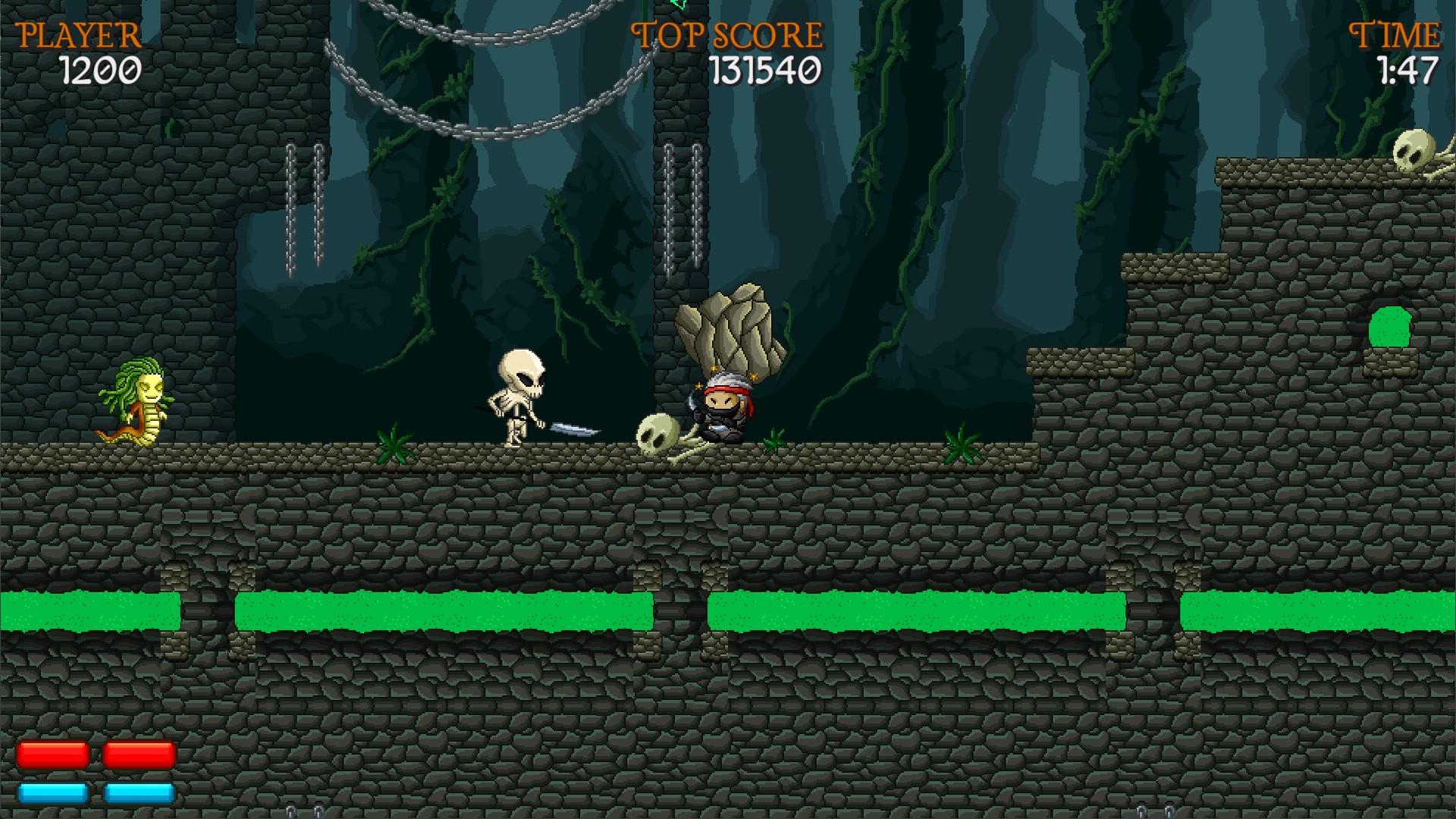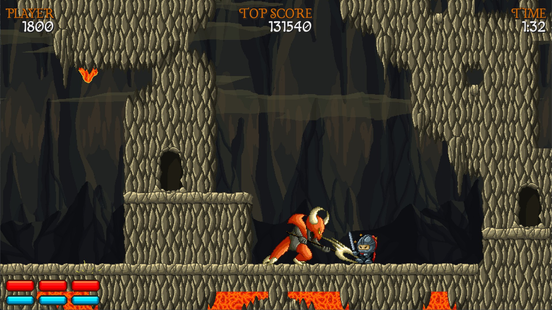 I nemici, come dicevamo, non mancano e sono quasi sempre posizionati in maniera strategica in modo da farci tanto male. Se ad esempio saltiamo da una piattaforma all'altra c'è una seria probabilità che ci arrivi un colpo in fase di atterraggio perché se è vero che i pattern d'attacco sono sempre gli stessi, è anche vero che i movimenti dei cattivi non sono sempre prevedibili, soprattutto quando sono in gruppo e tendono ad ammassarsi in un determinato modo. Non parliamo poi di trappole semi-nascoste al suolo o di pietre che all'improvviso ci piombano in testa. A peggiorare le cose c'è anche una hitbox non proprio precisissima, che evidenzia tutte le sue lacune quando ad esempio cadiamo nella lava (dove anziché annegare attraversiamo lo schermo) per non parlare delle volte in cui i nostri colpi sembrano incontrare nemici invincibili e non riescono ad arrecare danno oppure, altre volte, è come se li attraversassero.