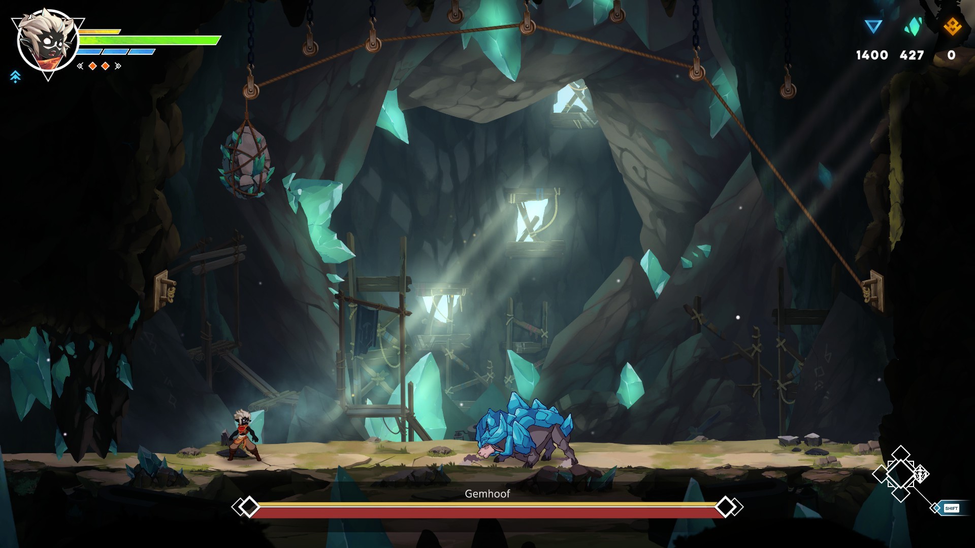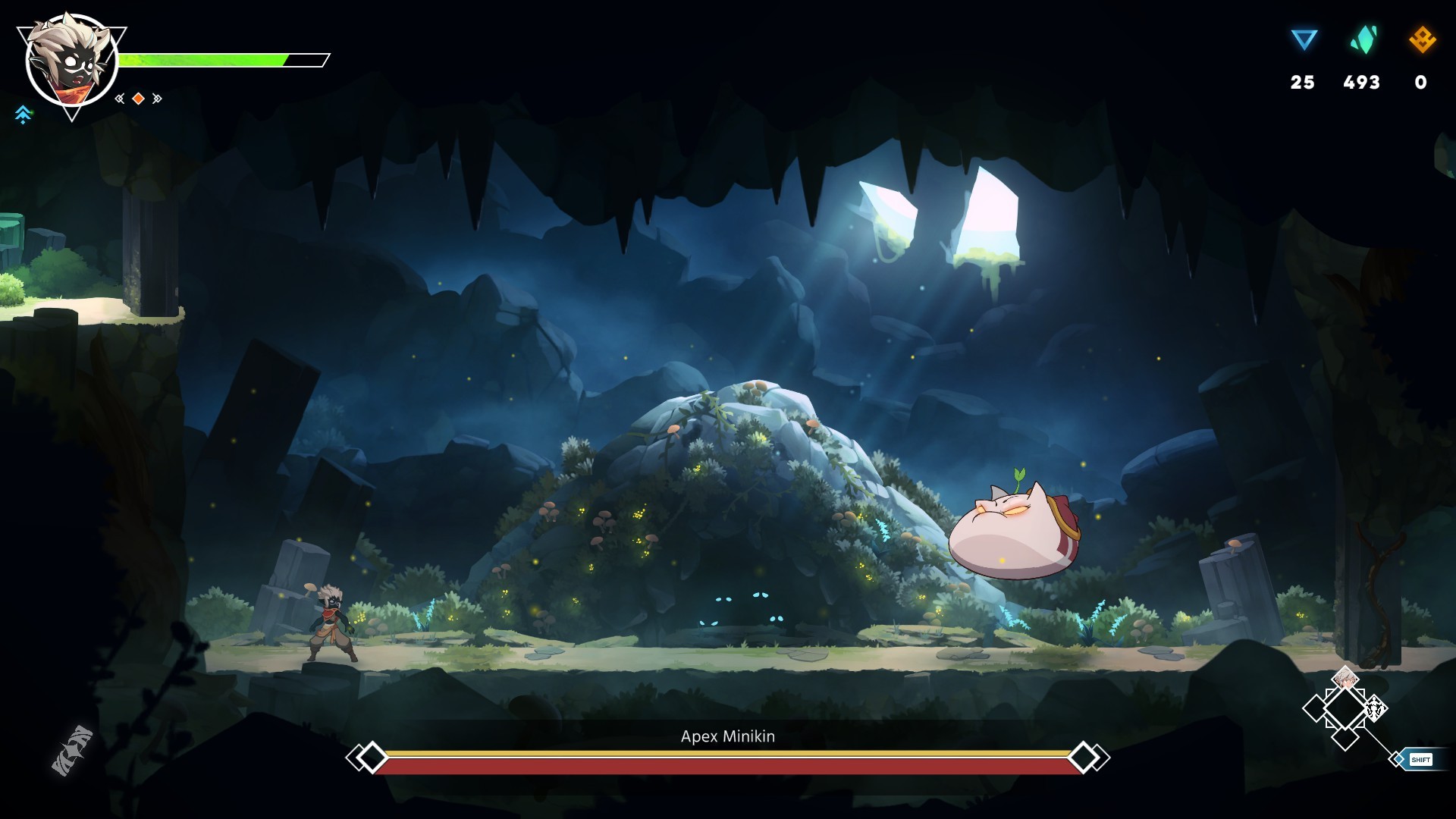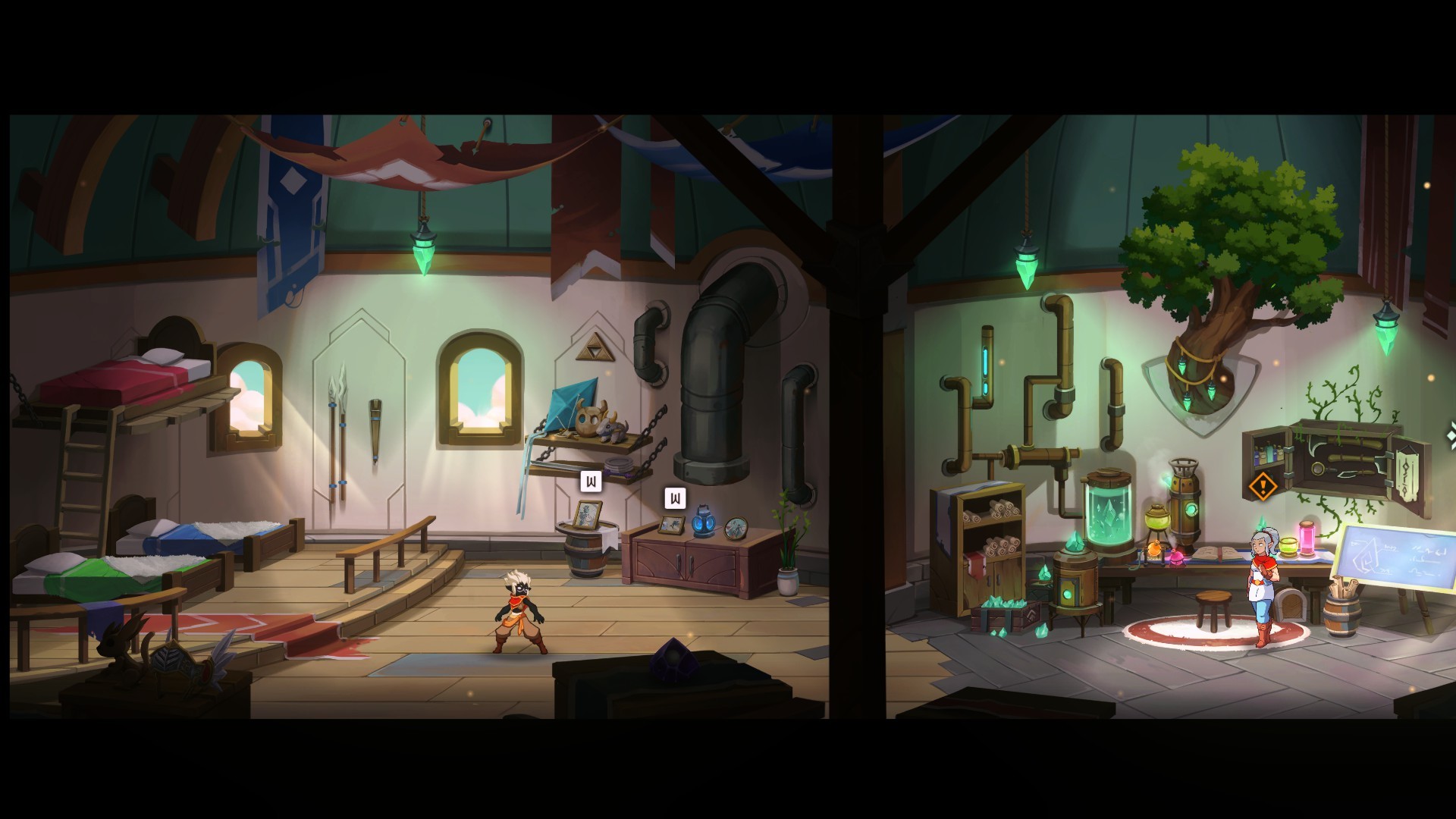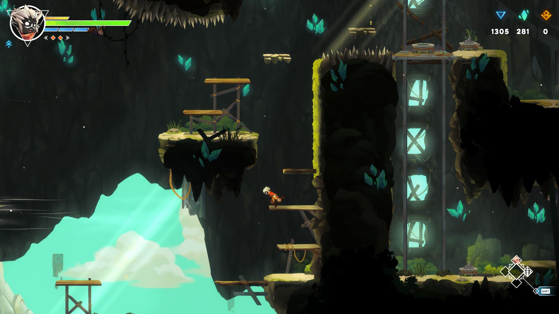La cara maga è la custode di Hedwynn un enorme albero connesso con ogni angolo del mondo (un po' come quello di Avatar per intenderci), e che emerge all'esterno soprattutto con i vari santuari e sub-santuari. Questi sono, come ci si può immaginare, dei punti ristoro attraverso i quali recuperare le forze, da utilizzare come checkpoint, oppure utili per lasciarsi andare con i potenziamenti come le Maestrie, i Legami del Destino e le abilità di Ascensione utili ad esempio per l'esplorazione e per il combattimento: come è lecito attendersi in un metroidvania sbloccare il doppio salto, l'arrampicata e lo scatto permettono non solo di avere più possibilità contro gli avversari ma anche di poter raggiungere luoghi prima inaccessibili e quindi è un invito non troppo velato a tornare indietro sui nostri passi.