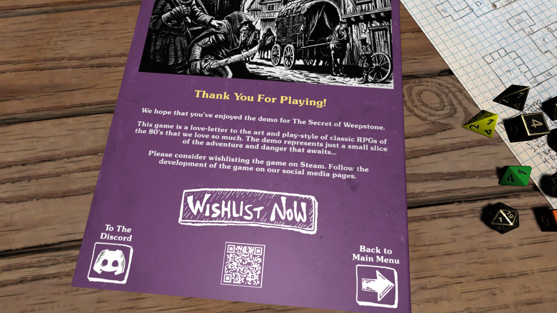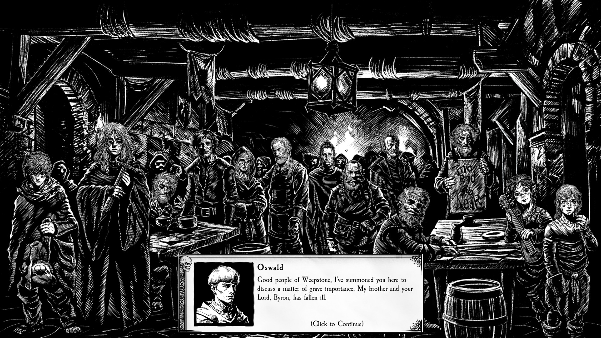 Lanciando la demo partirà la sequenza di apertura che illustra la storia che ruota attorno ad un forte/castello fatto costruire dal padre di Byron, l'attuale signore di Weepstone. Ma purtroppo è ora malato e vittima di terribili incubi che lo rendono inerme. Proprio per questo ci ritroviamo alla taverna allo scopo di trovare dei volontari tra i cittadini per esplorare il forte, il quale potrebbe dare delle risposte alla misteriosa “malattia” del signore della cittadina.