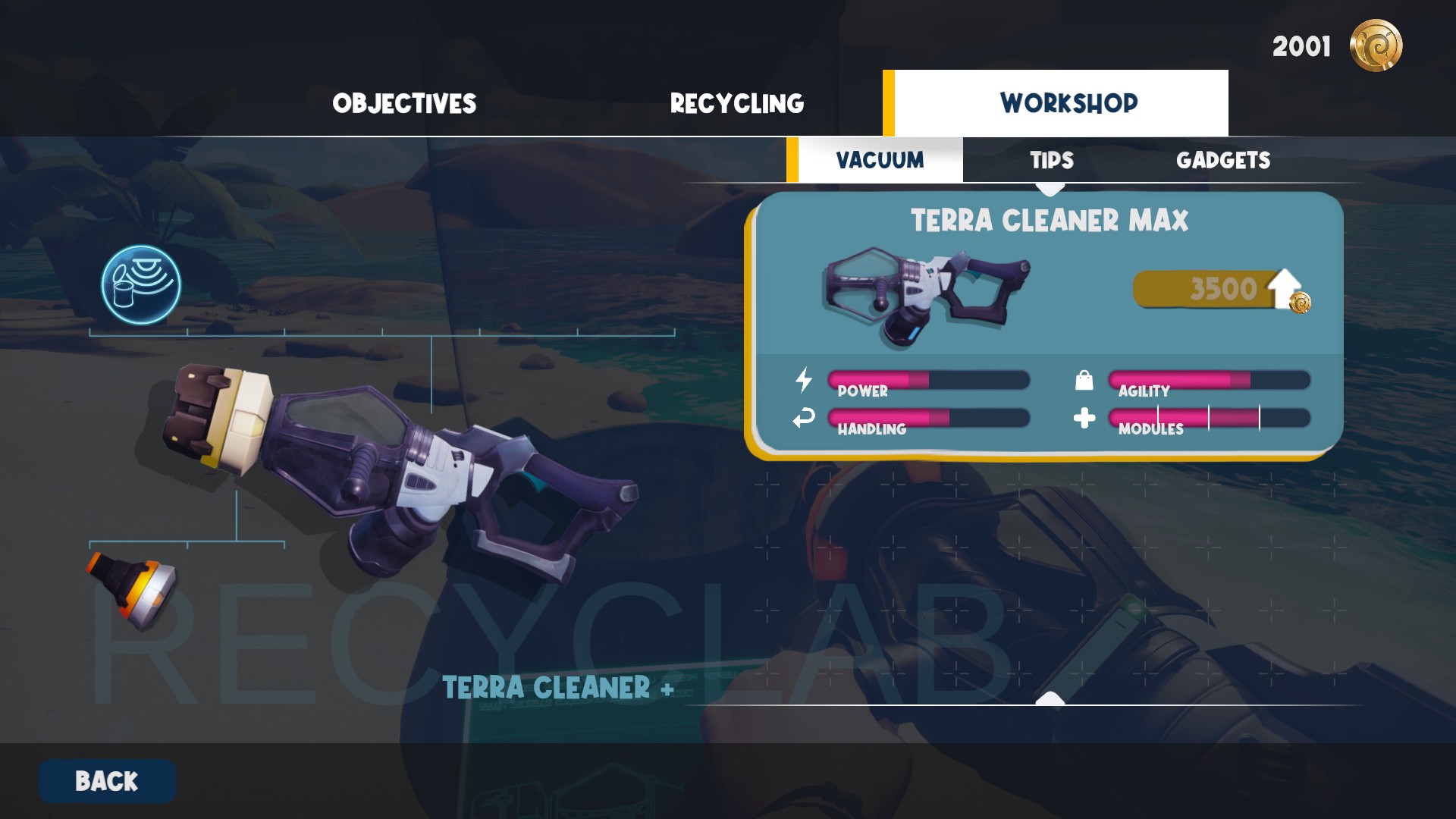 Potremo anche a trovare dei gadget nelle aree visitate come ad esempio un piccolo sonar (Blipman) utile per individuare i rifiuti nascosti, un boost per potenziare la nostra capacità di aspirazione, una radio per rilassarci durante il lavoro e così via; gadget da equipaggiare giocando con la crocetta direzionale del Controller. Inoltre l'area appena pulita ricomincierà a proliferare e capita spesso di assistere alla crescita immediata di nuova vegetazione al posto della spazzatura dell'uomo (con maggior soddisfazione per il giocatore).