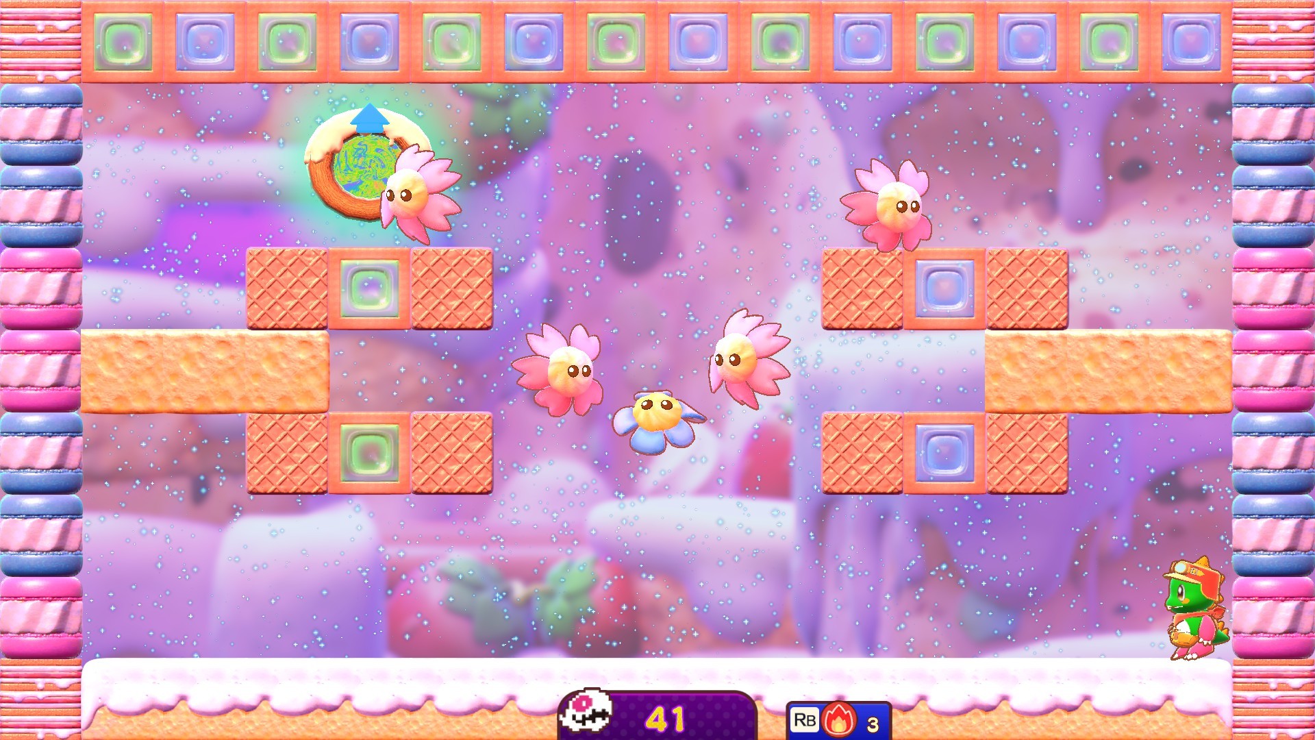 All'inizio del gioco ci viene offerta la possibilità di seguire un tutorial dove il robot Ammie ci spiegherà i rudimenti del sistema di controllo che, fortunatamente, sono rimasti semplici come in passato. Utilizzando il controller di Xbox Series X|S su PC (come facciamo di solito) abbiamo notato una certa inversione dei comandi rispetto allo standard (B per saltare e A per sparare le bolle), ma fortunatamente i tasti di gioco sono facilmente configurabili. I primi livelli comunque iniziano in maniera abbastanza agevole e non sarà difficile averne ragione, salvo poi complicare le cose un pochino più avanti.