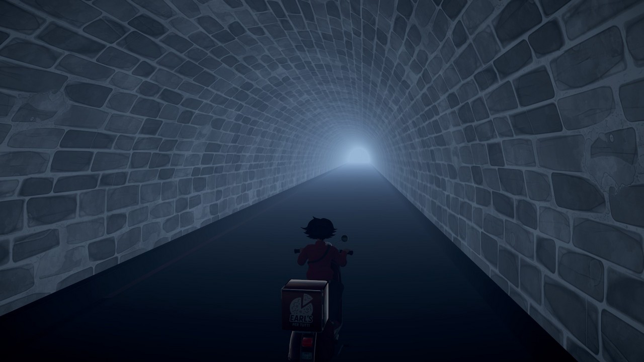 Imboccheremo una strana galleria quando una particolare interferenza (visibile anche a video) ci farà piombare in un mondo completamente diverso, a tratti distopico, comunque alternativo. Per fortuna, nella fitta nebbia che dà un senso di oppressione a tutto l'ambiente, il telefono squilla di nuovo ed Earl ci dice di seguire i lampioni accesi per trovare il percorso... fermo restando che nel nostro bauletto abbiamo due tipi di pizza, quella verde per il cliente e quella rossa in più da condividere con le persone trovate in giro perché si sa, davanti a una pizza ci si apre e confida meglio.
