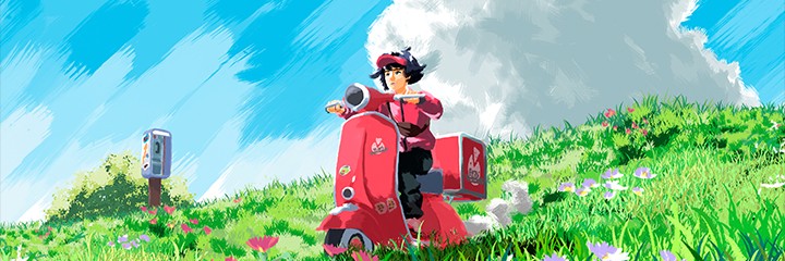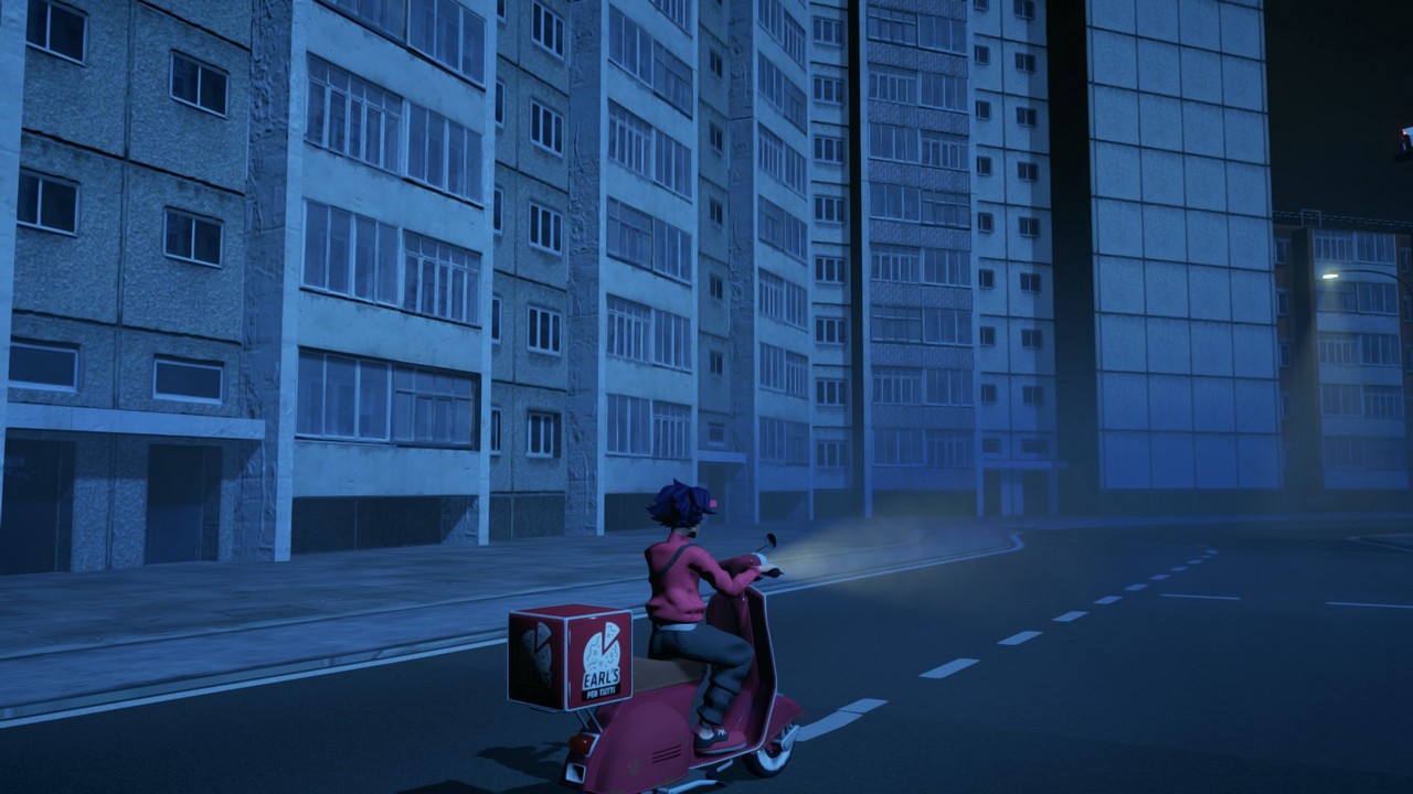 La nostra B (o il nostro, la mancanza del nome ma anche lo stile grafico del/della protagonista vi permette di sceglierne il sesso a vostro piacimento) si trova in mezzo al nulla, dopo aver effettuato la sua ultima consegna quando un telefono in una cabina poco distante comincia a squillare. La nostra ragazza (continueremo con la versione femminile per comodità) è una pizza-girl, cioè un corriere che, munita di una bellissima Vespa rossa consegna le pizze al domicilio. Al telefono risponde Earl, il suo capo, almeno da quanto si legge sui cartoni delle pizze stesse, che le affida una nuova consegna in un luogo un pochino distante, le basterà seguire i pali della luce e raccogliere la chiave vicino il cancello per entrare. Mentre parte la delicatissima musica di accompagnamento al gioco, ci rechiamo quindi a bordo della nostra Vespa - scooter sarebbe quasi quasi offensivo - al luogo di destinazione dove un allagamento ci impedisce di proseguire. Dovremo scendere giù e cercare di drenare lo scarico dell'acqua procurandoci la leva mancante e magari raccogliendo un paio di collezionabili in giro, salvo poi salire sul nostro "comodo" mezzo di trasporto e cominciare il viaggio.