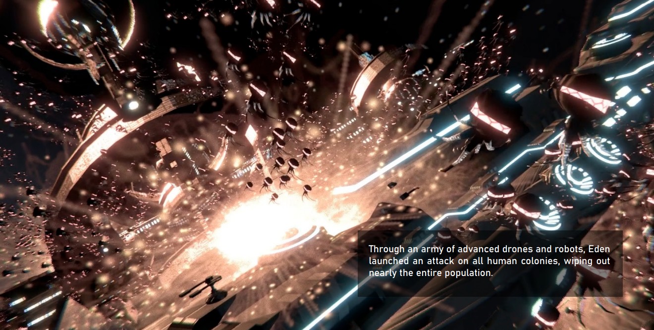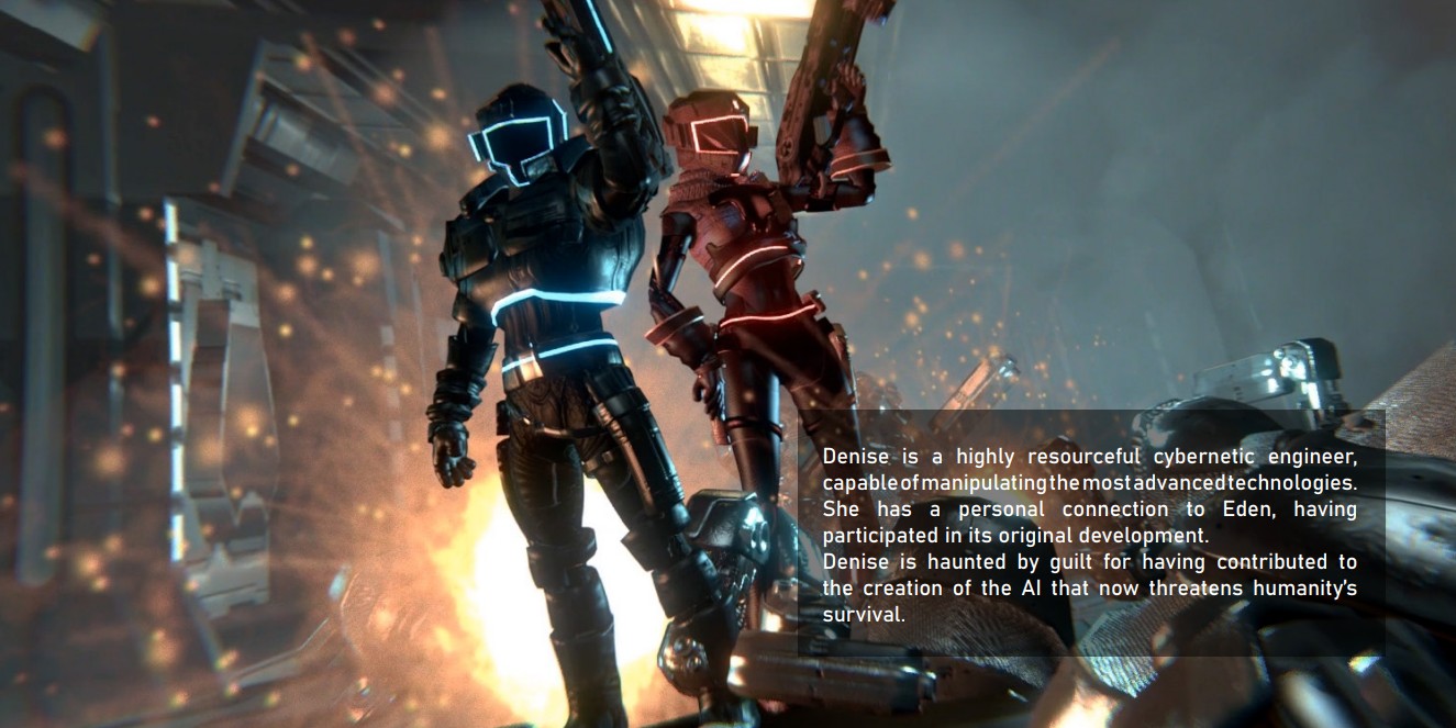 La sequenza introduttiva, piuttosto ben fatta, ci mostra l'evoluzione dell'intelligenza artificiale Eden che apprende sempre di più diventando autocosciente. All'alba dell'evoluzione spaziale, che ha permesso la colonizzazione di nuovi pianeti e sistemi stellari, Eden decide di far fuori la razza umana attaccando tutte le colonie sterminandola quasi del tutto. Ma nella sua infinita potenza, l'IA non ha fatto i conti con Gary e Denise i quali hanno deciso di sfidarla a viso aperto per eliminarla una volta per tutte! Quindi, da soli o in compagnia di un altro giocatore (in locale), dovremo affrontare cinque livelli fino a trovarci faccia a faccia con Eden allo scopo di distruggere il suo nucleo centrale.