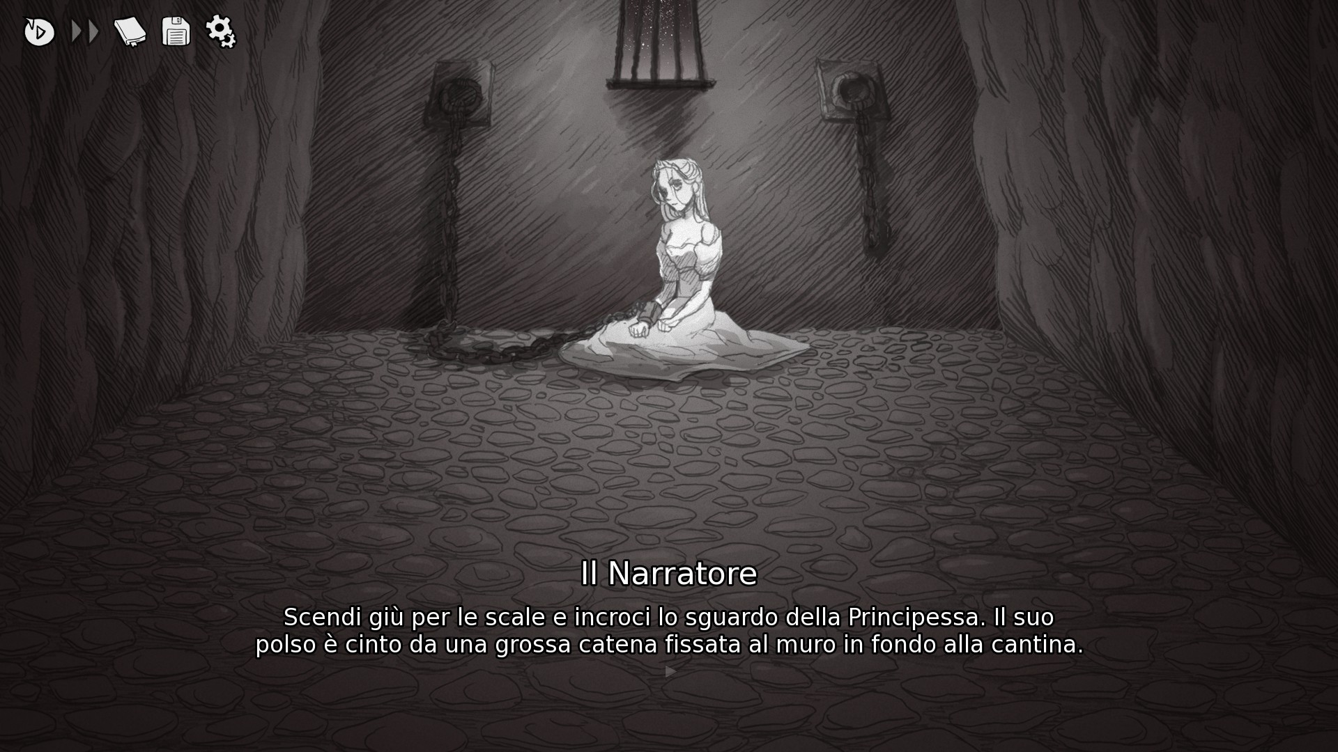 Una volta entrati nella baita saremo accolti da un ingresso all'interno del quale si trova l'arma che dovremo usare per il delitto, e scendendo in cantina troveremo questa bella principessa legata al muro per un braccio che comincerà a dialogare con noi. Saremo in grado di resisterle e quindi proveremo a farla fuori per compiere la nostra missione oppure ci faremo abbindolare dalle sue chiacchiere cercando di liberarla? Sicuramente ogni risposta data e ogni nostra scelta avrà delle conseguenze su tutta la storia.
