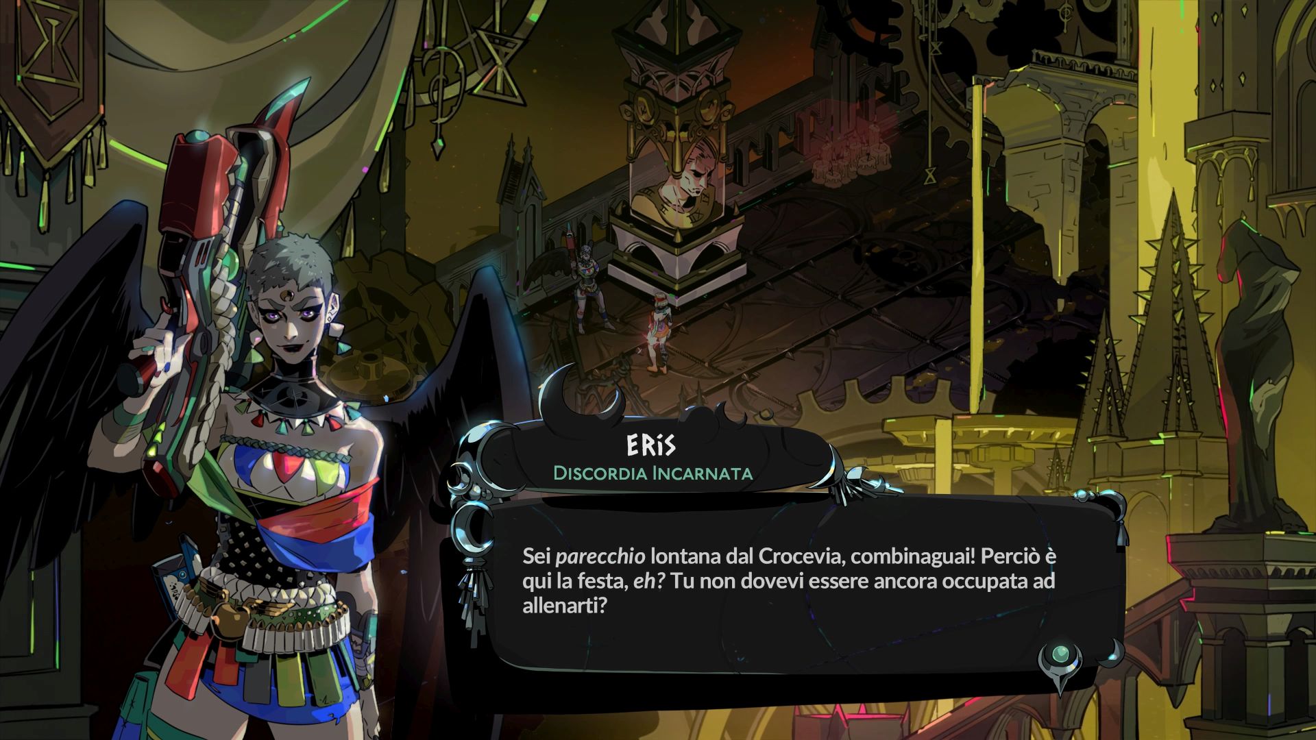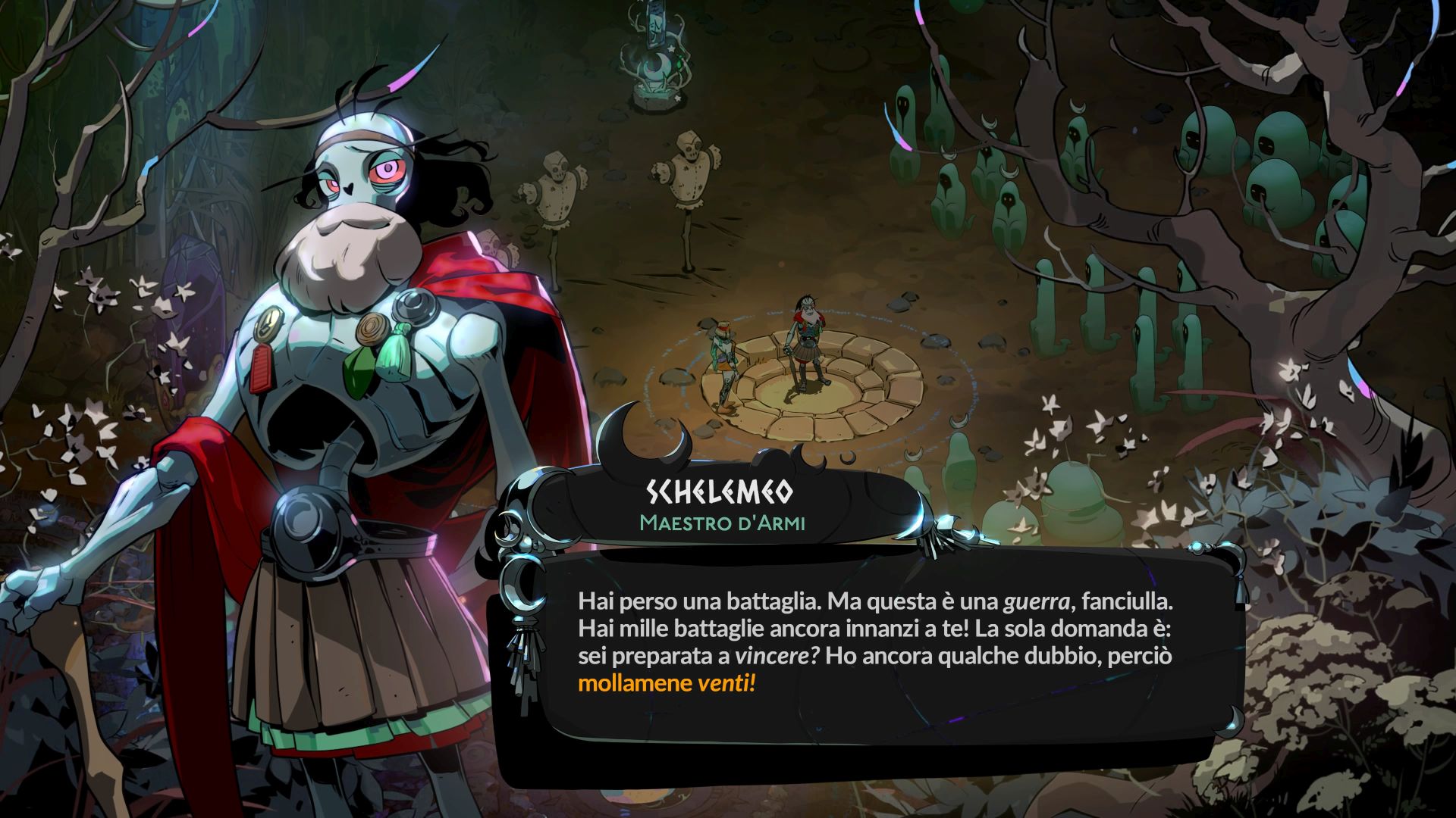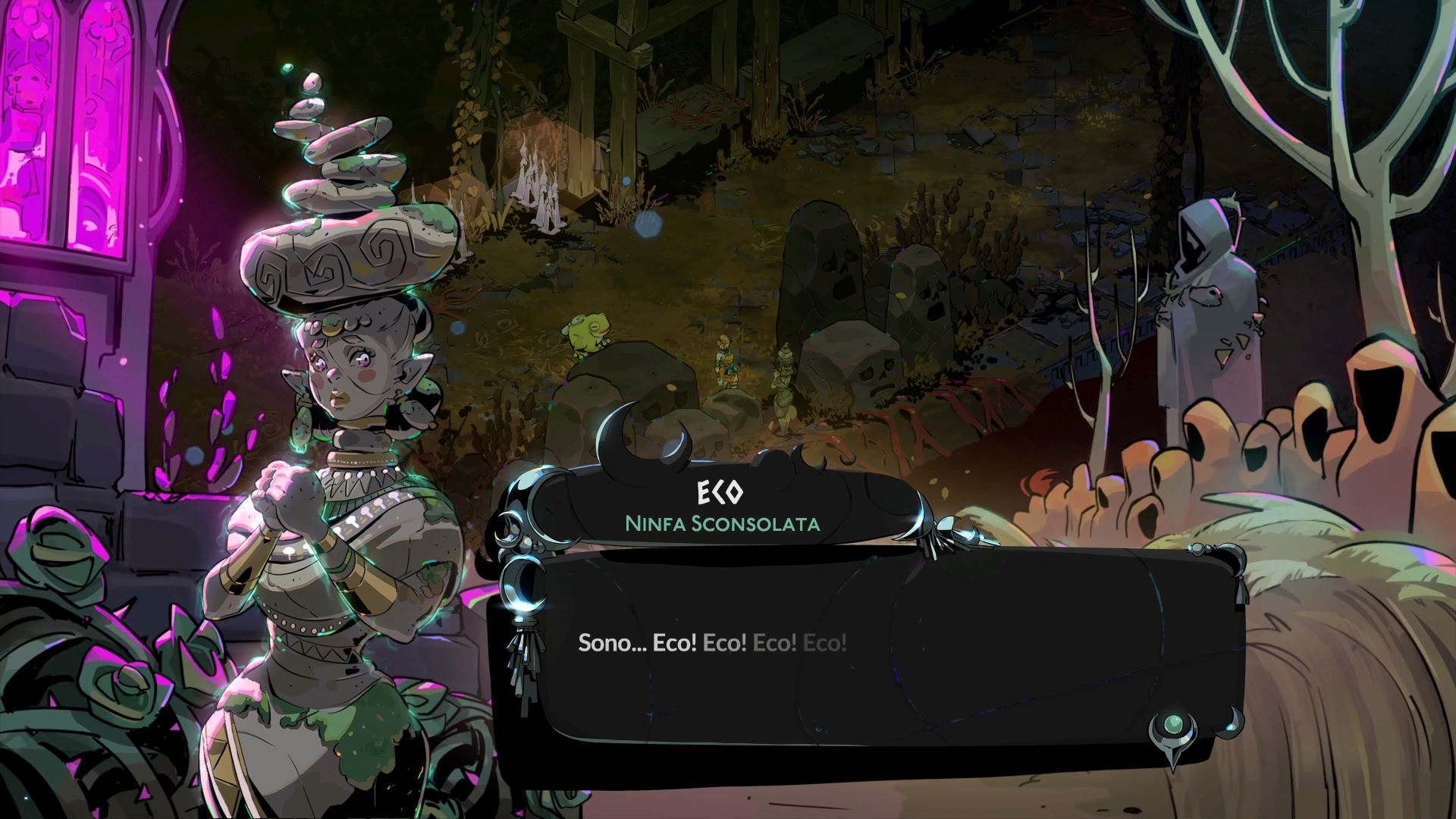 Se da un lato chi già ha vissuto le avventure di Zagreus probabilmente impiegherà pochi minuti a ritrovare sul controller i “pedali della bibicletta”, dall'altro lato i due giochi presentano qualche differenza anche solo in termini di gameplay grezzo: è dunque bene rivedere il sistema da capo, anche a beneficio di chi invece fosse digiuno del primo Hades [ma che diavolo state aspettando a recuperarlo?!?]. Il gioco, s'è detto, è un Hack & Slash bidimensionale isometrico: Melinoe dovrà superare una serie di arene successive generate casualmente, affrontando e sconfiggendo tutti i nemici presenti prima di poter aprire una delle porte (normalmente due, occasionalmente una sola o ben tre) che le consentiranno di proseguire. Su ciascuna porta sarà rappresentata la tipologia di bonus ottenibile superando la stanza successiva: la maggior parte dei bonus sarà attiva solo durante la run in corso e sarà perduta in caso di [frequente e reiterata] sconfitta, altre sono risorse che la ragazza potrà accumulare e spendere presso la sua base in modo da ottenere bonus permanenti oppure sbloccare nuovi elementi del gameplay. Riassumendo: si combatte, si esplora, si accumula, si muore, ci si potenzia e si riparte da capo. At nasueam.