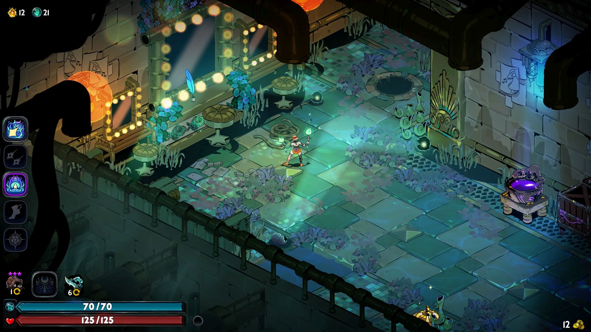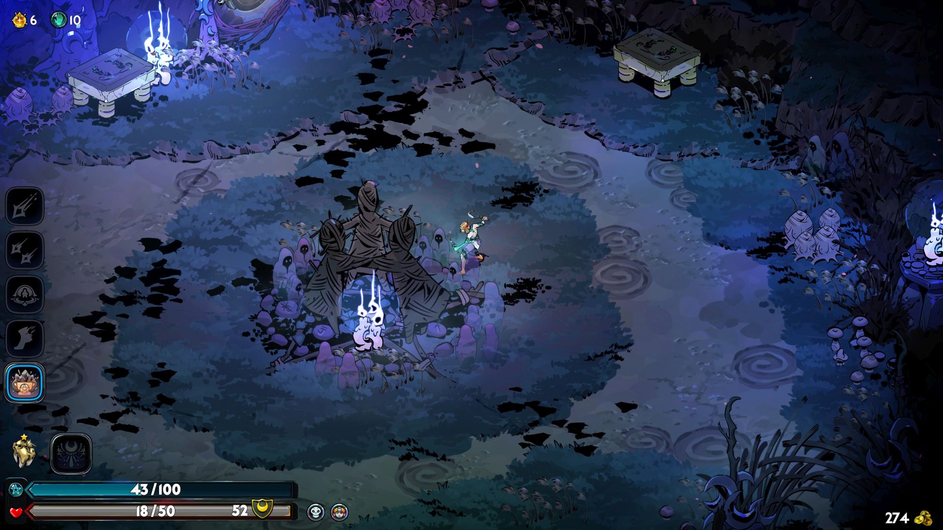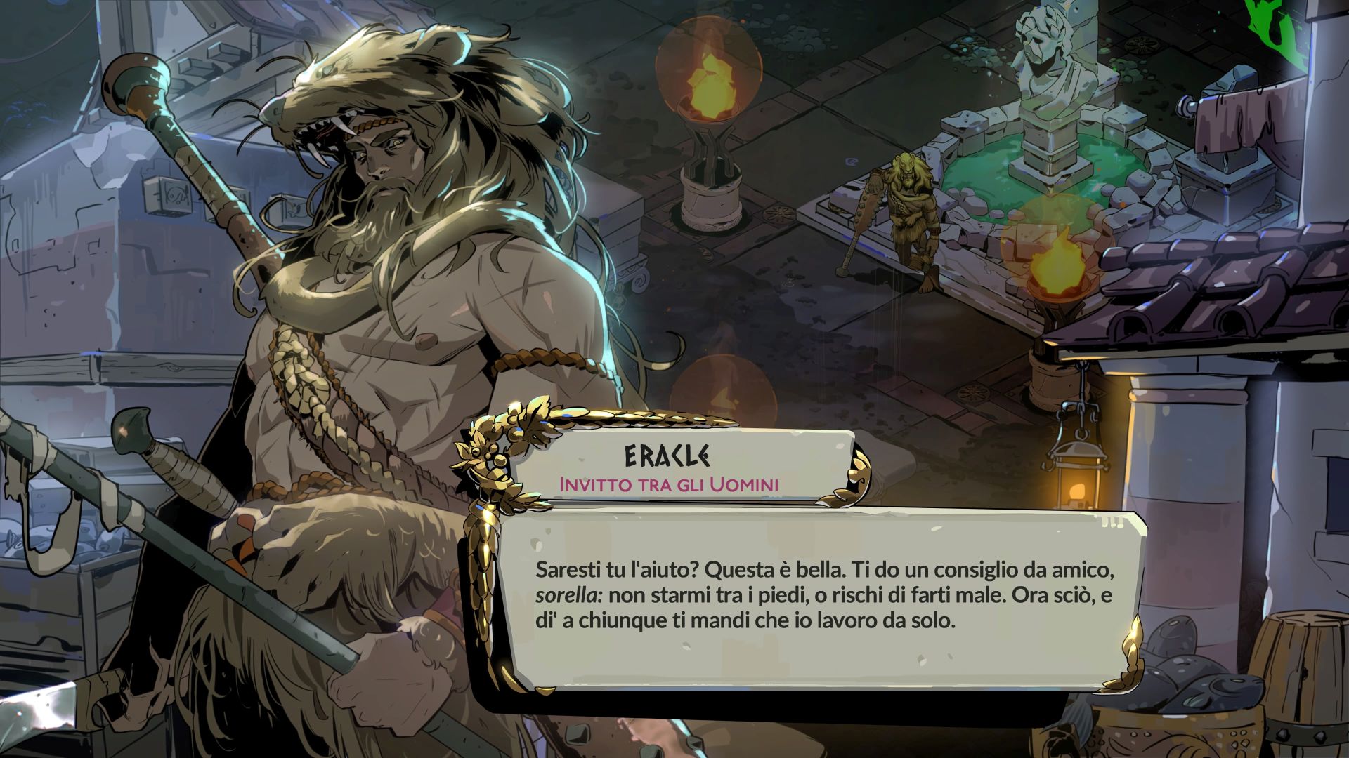 Se da un lato chi già ha vissuto le avventure di Zagreus probabilmente impiegherà pochi minuti a ritrovare sul controller i “pedali della bibicletta”, dall'altro lato i due giochi presentano qualche differenza anche solo in termini di gameplay grezzo: è dunque bene rivedere il sistema da capo, anche a beneficio di chi invece fosse digiuno del primo Hades [ma che diavolo state aspettando a recuperarlo?!?]. Il gioco, s'è detto, è un Hack & Slash bidimensionale isometrico: Melinoe dovrà superare una serie di arene successive generate casualmente, affrontando e sconfiggendo tutti i nemici presenti prima di poter aprire una delle porte (normalmente due, occasionalmente una sola o ben tre) che le consentiranno di proseguire. Su ciascuna porta sarà rappresentata la tipologia di bonus ottenibile superando la stanza successiva: la maggior parte dei bonus sarà attiva solo durante la run in corso e sarà perduta in caso di [frequente e reiterata] sconfitta, altre sono risorse che la ragazza potrà accumulare e spendere presso la sua base in modo da ottenere bonus permanenti oppure sbloccare nuovi elementi del gameplay. Riassumendo: si combatte, si esplora, si accumula, si muore, ci si potenzia e si riparte da capo. At nasueam.