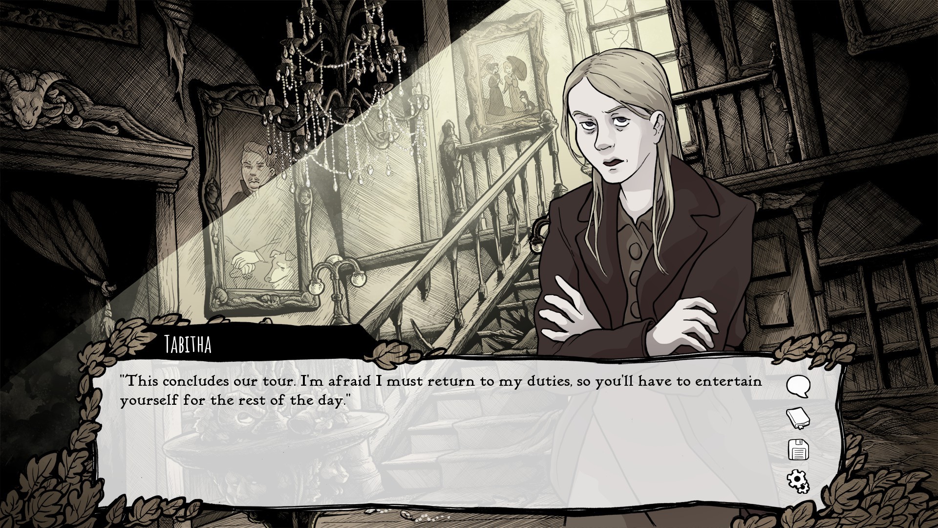 Parteciperemo al dialogo selezionando di volta in volta una frase dalle diverse che ci vengono proposte e in questo modo riusciremo a incanalare la discussione in un verso o in un altro. Fin da subito balza all'occhio la quantità esagerata di risposte possibili durante il dialogo, a tutto appannaggio di una maggiore libertà di opinione e di discussione. Poi faremo la conoscenza della scontrosa Tabitha che ci mostrerà la camera dove alloggiare, mettendo subito dei paletti su cosa possiamo toccare oppure no. Approfondire il dialogo servirà a darci qualche informazione sul perché di tanta distanza anche se, per fare aprire alla conversazione la cugina, dovremo insistere un bel po' e in momenti diversi.