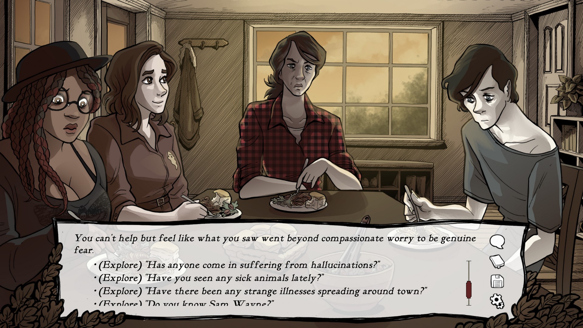 Come è logico attendersi la nostra visita a Scarlet Hollow non si limiterà al funerale della zia, ma scoperchierà un intero mondo di eventi soprannaturali a tinte horror che affliggono la piccola e isolata cittadina. Naturalmente stiamo parlando di un gioco che fa dello sviluppo narrativo tutto il suo fulcro e quindi il rischio di fastidiosi spoiler è sempre dietro l'angolo. Proprio per questo vogliamo dirvi il meno possibile sulla storia. Di sicuro girovagando per la città si conosceranno tante persone, come lo strano Wayne, Kaneeka e molti altri che lasciamo a voi il piacere di scoprire. Fatto sta che ognuno di loro è ottimamente caratterizzato, delineando un profilo interessante e profondamente credibile.