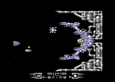 Ma parliamo delle ondate di alieni: ciò che rendeva bellissimo Delta era quello stato di leggera trance provocata dai nemici e dalle loro formazioni multicolore danzanti sullo schermo, un attimo prima che diventassero assolutamente mortali per voi. Tutto questo in Armalyte viene riproposto in maniera decisamente più intensa: le ondate si susseguono senza tregua in varie forme e l'attack-rate in alcuni punti del gioco è davvero alto, tanto da lasciarvi spesso col fiato sospeso fin quando non ne uscite (se ne uscite). Gli sprites di tutti i nemici sono farciti di morbidissimi e numerosissimi frames d'animazione e si rileva in generale in tutto il gioco una cura maniacale dei dettagli di tutto ciò che è sullo schermo (potete rendervene conto dando un'occhiata ai proiettili degli alieni per esempio). Questo ci porta inevitabilmente a decantare i boss di metà e fine livello. Non contenti di aver superato quasi tutto quello che era stato realizzato all'epoca sul piccolo commodore, i ragazzi della Cyberdyne Systems pensarono bene di esagerare anche con i boss (e di ispirare quelli del successivo capolavoro della Thalamus Retrograde): a metà livello incontrate quelli piccoli ma comunque tosti e più grandi di voi, che nonostante la stazza ridotta vi faranno sudare le dita, mentre a fine livello vi imbatterete in mastodontiche costruzioni aliene piene di bocche di fuoco e cattiveria, alcune delle quali sfrecciano sullo schermo con una disinvoltura e una velocità tali da fare ancora oggi una certa impressione (ricordate che stiamo parlando di un 8 bit con capacità, per i tempi, abbastanza limitate se escludiamo il processore sonoro).