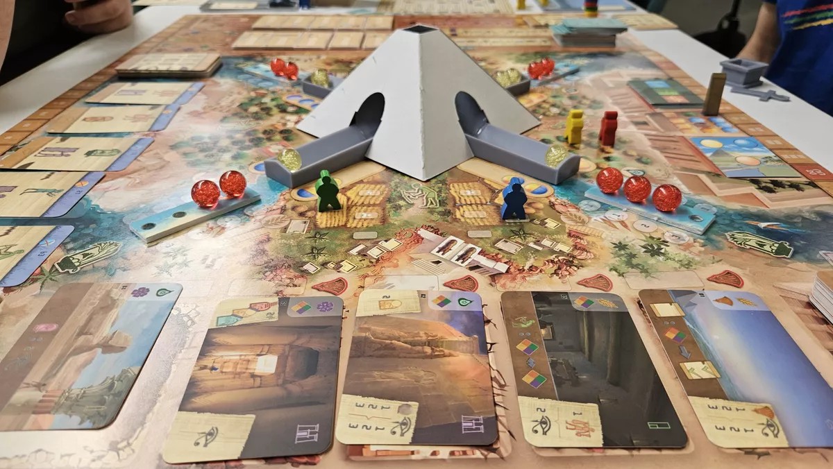 Cos'è Tameri? E', come abbiamo, detto un gioco da tavolo fino a 4 giocatori che ci catapulta nell'Antico Egitto dove si sperimenterà la vita quotidiana esplorando un tema classico da un punto di vista originale che enfatizza l'agricoltura, la vita tradizionale e la grande importanza dei cicli meteorologici nella Valle del Nilo. In questo gioco, potrete coltivare la terra, costruire edifici, assegnare sacerdoti a diversi templi, costruire sfingi e molto altro ancora. Ma vediamo il video di presentazione: