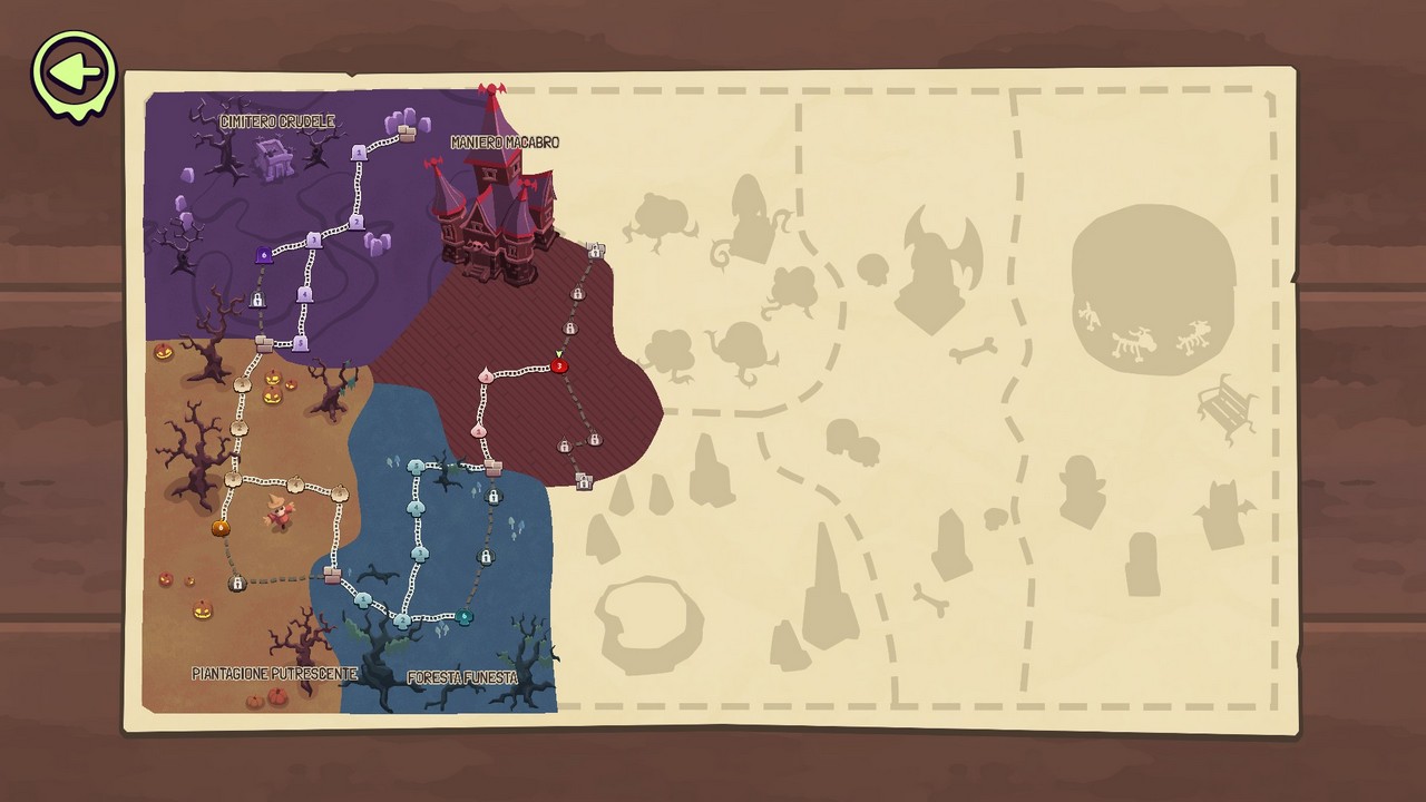 Una volta risolta una locazione si passa alla successiva e così via attraverso dei percorsi (anche a bivi), che ci permettono di andare avanti attraversando anche diversi biomi ottimamente caratterizzati anche dal punto di vista grafico: passeremo dal cimitero crudele, dalla piantagione putrescente, dalla foresta funesta al maniero macabro e così via. In totale ci sono 220 livelli circa da completare per un livello di sfida con difficoltà crescente, in grado di impegnarci per un bel po'. Una volta completati i livelli di un bioma si possono affrontare dei livelli extra - magari quelli che avevamo scartato dal nostro percorso - per una sfida ancora più impegnativa.