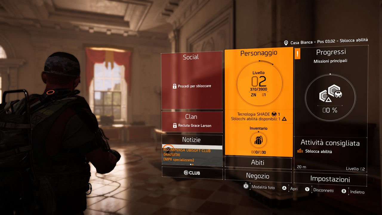 Dopo un piccolo prologo che ci fa prendere un po' di confidenza con il gameplay, giungiamo al quartier generale di Washington DC, la Casa Bianca, dove ci si apriranno immense possibilità sulle cose da fare nel gioco. Potremo infatti vendere, comprare, creare equipaggiamento, potenziare il personaggio, sbloccare vantaggi per la Dark Zone e molto altro che lasciamo a voi il piacere di scoprire. La struttura di gioco ricorda quella del primo capitolo anche se, stavolta, gli sviluppatori hanno aggiunto la comodissima possibilità (sbloccabile dopo poco tempo) di farci indicare la prossima attività da svolgere. Solitamente le missioni principali richiedono la conquista di avamposti caduti nelle mani delle forze anarchiche che tengono Washington sotto assedio. Ogni avamposto liberato ci elargirà un interessante bottino e permetterà la successiva attivazione di missioni secondarie. Ad ogni modo, in linea di massima, si tratterà di affrontare un certo numero di nemici sempre più ostici, fino alle battaglie con i vari boss.