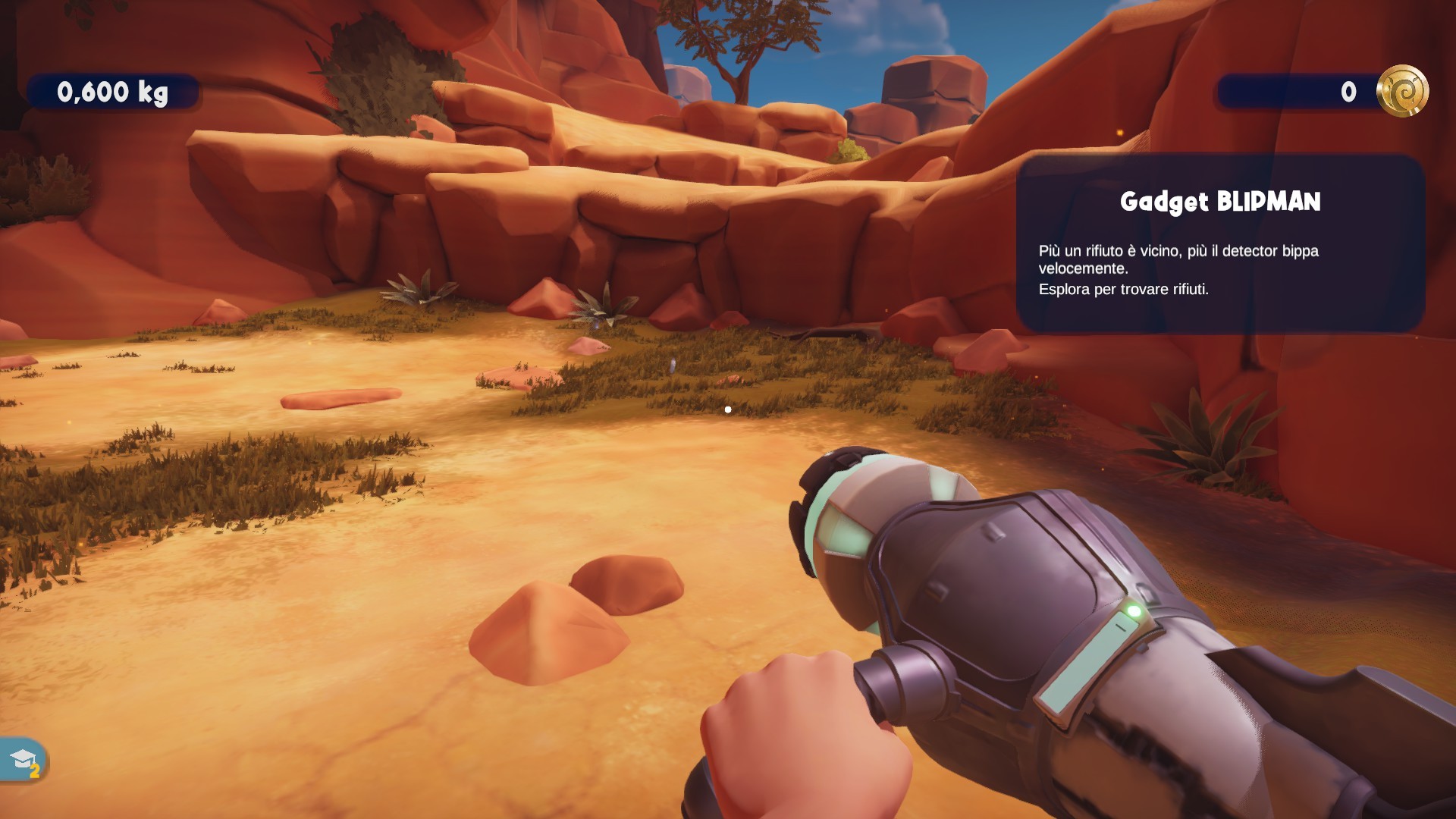 All'inizio abbiamo solo l'ugello base attaccato al nostro Terra Cleaner, che ci permette di aspirare rifiuti leggeri e piccoli contando però su un ampio raggio d'azione. Ma per gli oggetti più pesanti ci servirà l'ugello di precisione, mentre l'Archeo ci consentirà di tirar fuori i rifiuti interrati e un altro modello ancora ci farà trattare i rifiuti radioattivi (abbiamo disseminato anche quelli nel corso dei secoli). Fondamentalmente si tratta solo di montare l'accessorio giusto (RB e LB) se lo abbiamo disponibile oppure dovremo recuperarlo sullo scenario, e aspirare il tutto. Un indicatore ci dirà quanti chilogrammi (o quintali) di rifiuti ci sono in quella determinata area e, ovviamente, la nostra missione sarà quella di portare quell'indicatore allo zero.