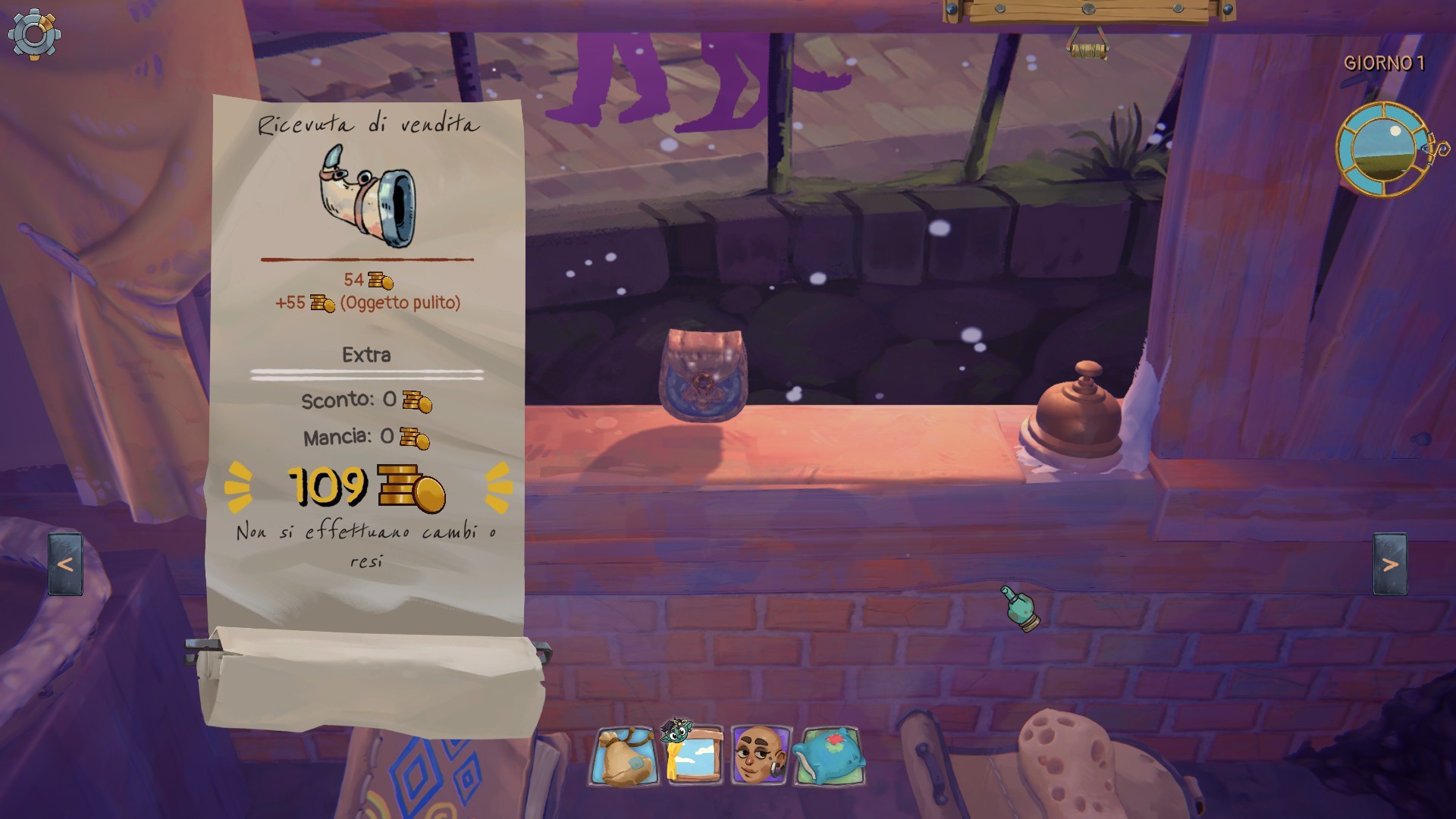 Il letto infatti è importante per scandire le varie giornate alla fine delle quali il gioco ci costringerà a riposare (anche se stiamo servendo un cliente) per ritemprare le forze e soprattutto per dare spazio alle statistiche della giornata, oscillanti fra guadagni e reputazione verso i vari clienti. Il vero fulcro del gioco è proprio qui: non ci sono limiti di tempo. Possiamo impiegare cinque minuti a soddisfare un cliente, oppure mezza giornata, nessuno ci farà mai fretta o dirà che vuole l'articolo al più presto. Il tempo scorre lento, rilassato, senza alcun tipo di pressione. Se non avremo l'oggetto pronto per un determinato cliente potremo benissimo dirgli di ritornare un'altra volta, al nostro richiamo, se dobbiamo andare a dormire lo lasceremo lì allo sportello salvo trovarlo l'indomani oppure quando deciderà di tornare, non c'è nessuna fretta.