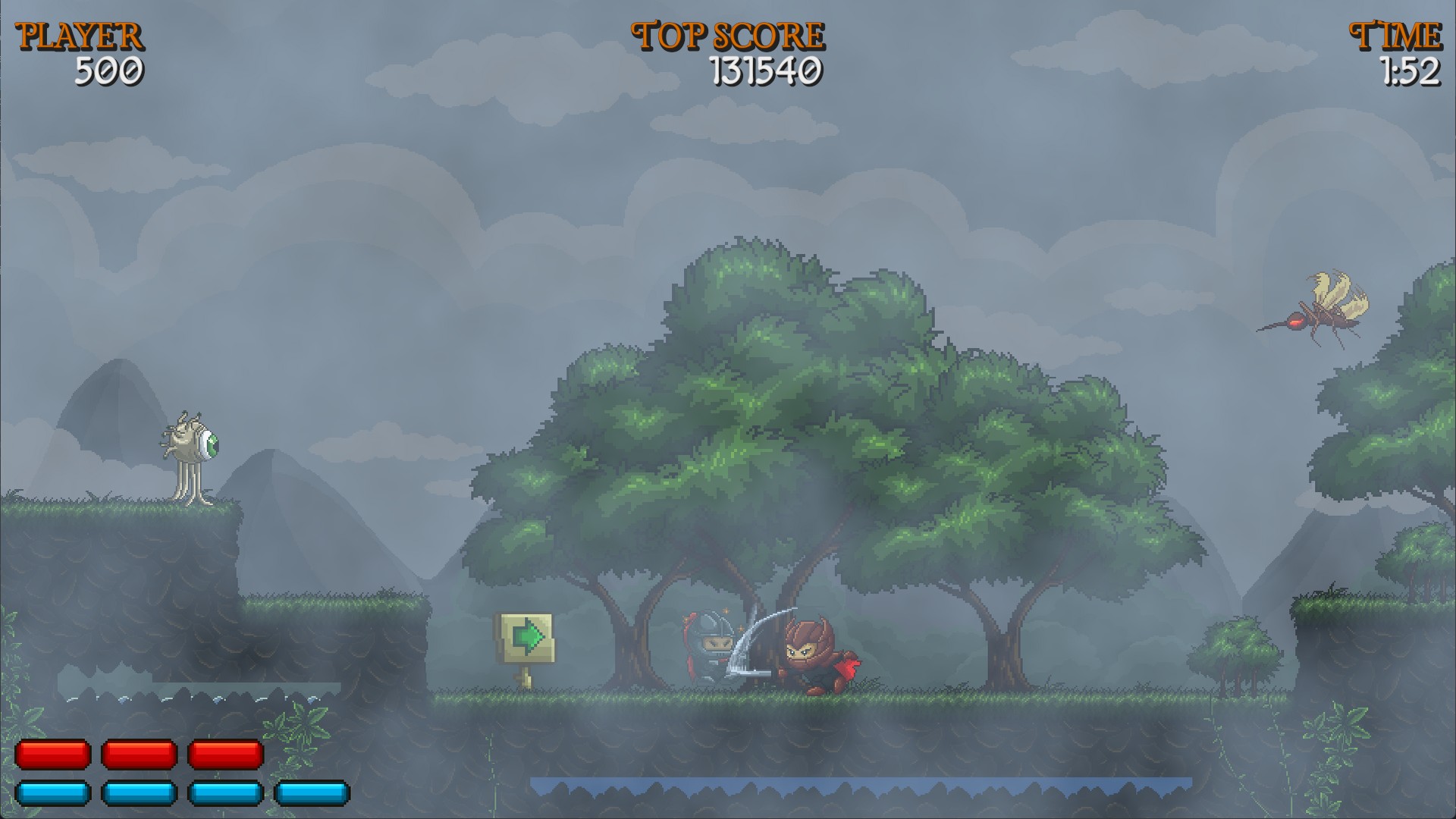 Anche il comparto tecnico oscilla tra cose buone e altre meno. Dicevamo dei bei disegni di protagonisti e cattivi e lo stesso si potrebbe dire anche per i fondali. La pixel art utilizzata, però, è molto ibrida mescolando diverse densità di pixel (vedi gli alberi) e lanciandosi direttamente in diverse risoluzioni come nel caso dei counter in alto. Le animazioni sono molto semplici e quindi generalmente non danno problemi di sorta ma, malgrado questo, abbiamo assistito a piccoli glitch e compenetrazioni poligonali (soprattutto quando ci siamo "incartati" su un nemico con nessuno dei due che faceva fuori l'altro). Abbiamo già detto delle hitbox non proprio precisissime, ma ancora più fastidioso è quel piccolo lag nella risposta al pulsante di fuoco che ci costringe, praticamente, ad anticipare tutte le nostre azioni (quando ci riesce ovviamente).